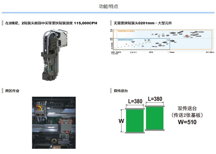 極 限改進“單一貼裝頭解決方案”,具有卓絕生產率和通用性的萬 能型貼片機