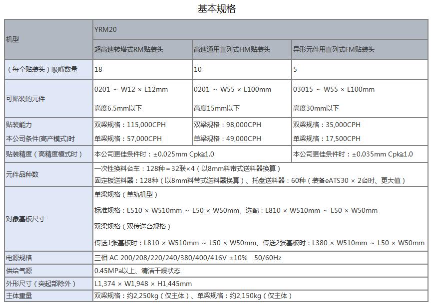 YRM20高效模塊貼片機 極 限改進“單一貼裝頭解決方案”,具有卓絕生產率和通用性的萬 能型貼片機1.融合Σ系列產品的技術,實現卓絕的生產率.2.采用“單一貼裝頭解決方案”,廣泛對應各種生產.3.標準配備可維持高品質貼裝的各項功能.4.通過運用豐富的功能群,實現高效生產.